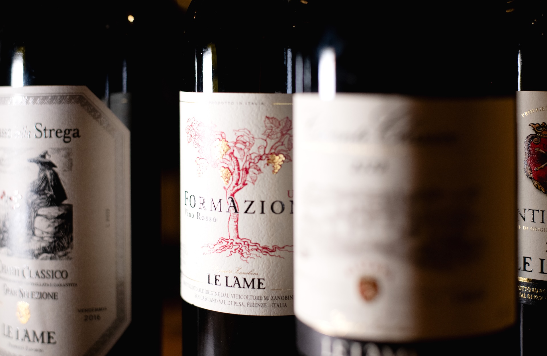 All’interno del negozio, sugli scaffali e nella storica cantina, si trova una selezione di circa 2000 etichette tra vini, spumanti, liquori e distillati, oltre ai vini direttamente prodotti nella “Tenuta Le Lame” in San Casciano in Val di Pesa, zona di produzione del Chianti Classico.